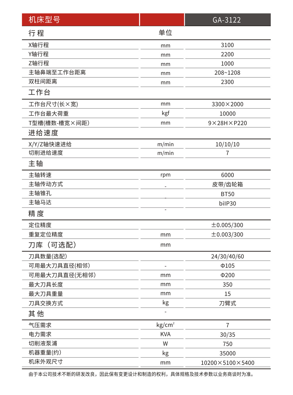 三軸行程(X/Y/Z軸):3100x2200x1000mm